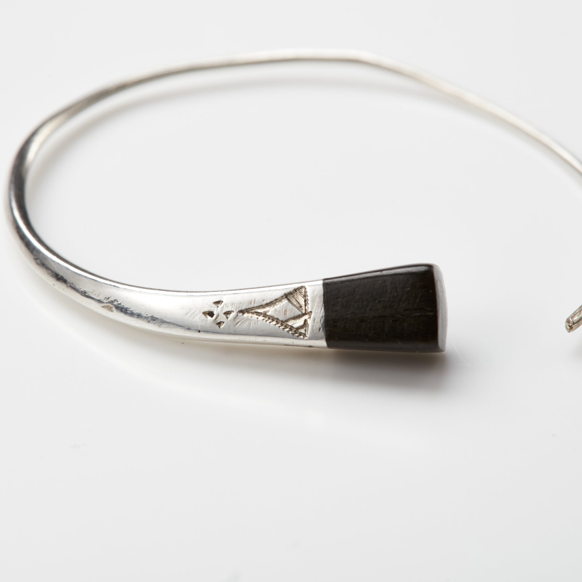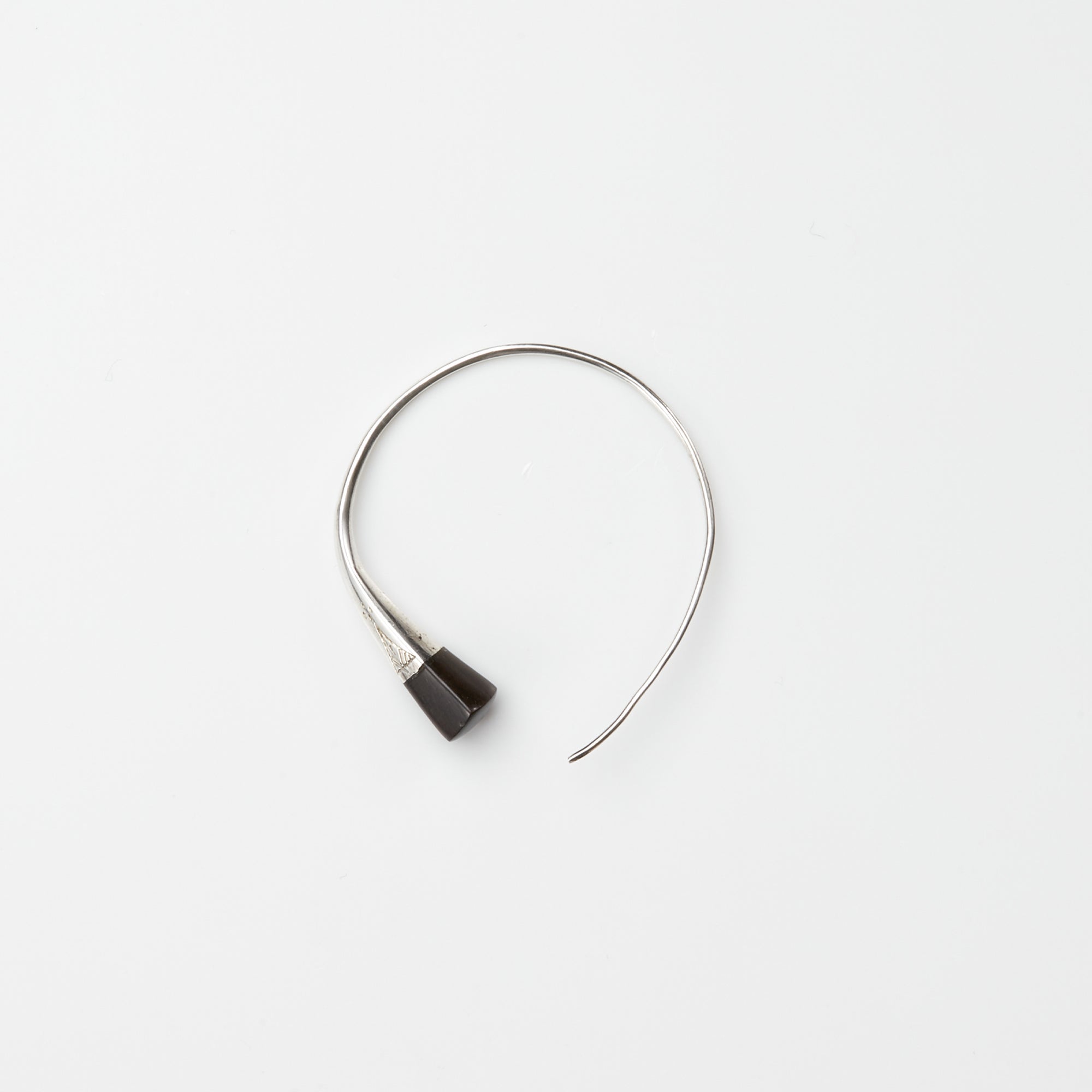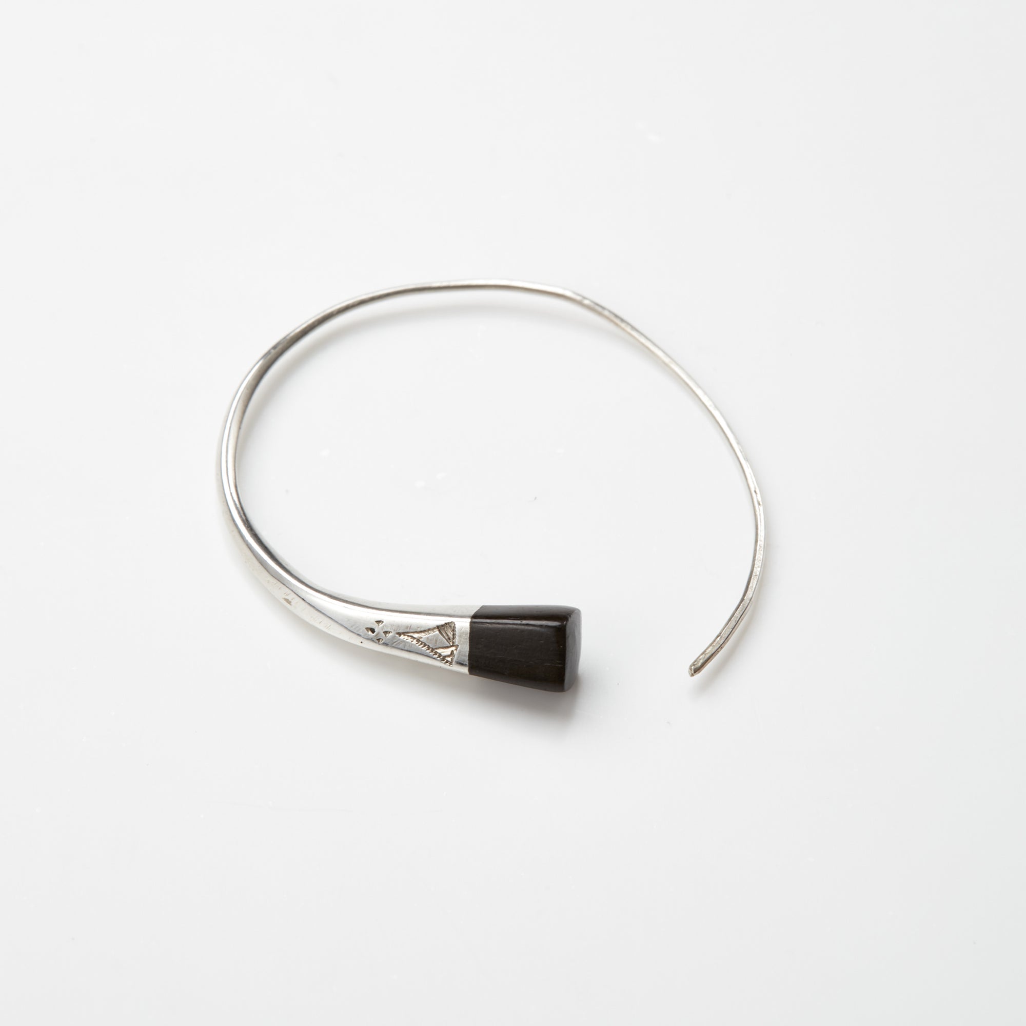 北アフリカの先住民族の言語で「Tafoukt/タフォクト」のピアスです。 表面の文様は1刀1刀が手彫りで丁寧に彫られ、その文様にはそれぞれ意味があり、事物、物語、寓意などを象徴しています。 円のようなデザインが特徴になり、ピアスの端にはシルバーと非常に堅い木材のエボニーウッドが何層にも使われ、繊細な技術と伝統的なデザインが魅力です。(*エボニーウッドとは、黒檀という木のことで、アジアからインドを抜けてアフリカまで分布している銘木) 目を引くデザインのため、シンプルなスタイルをはじめ様々なコーディネートのアクセントとしてご使用頂けます。